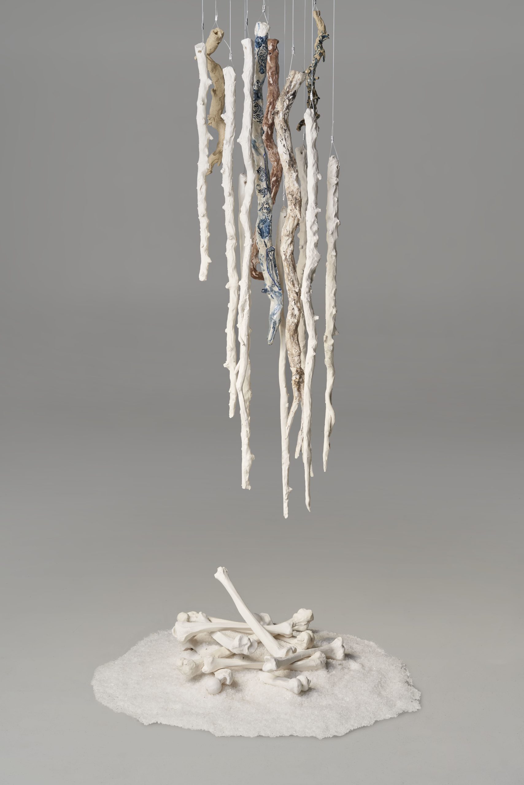 These lived experiences have driven new aesthetics in my work. I walked around and collected discarded objects from the surface of remote communities and then slip cast hundreds of porcelain replicas to create installation works. I learnt traditional blue and white painting on porcelain during my time in China and explored the symbolism of Daoism from broken pottery shards. These things have all added to the rich visual language of my ceramics. The Pandemic forced a redirection in my work with a focus on home in Adelaide. The elemental power of small and everyday things, such as sticks, became another inspiration for my art.