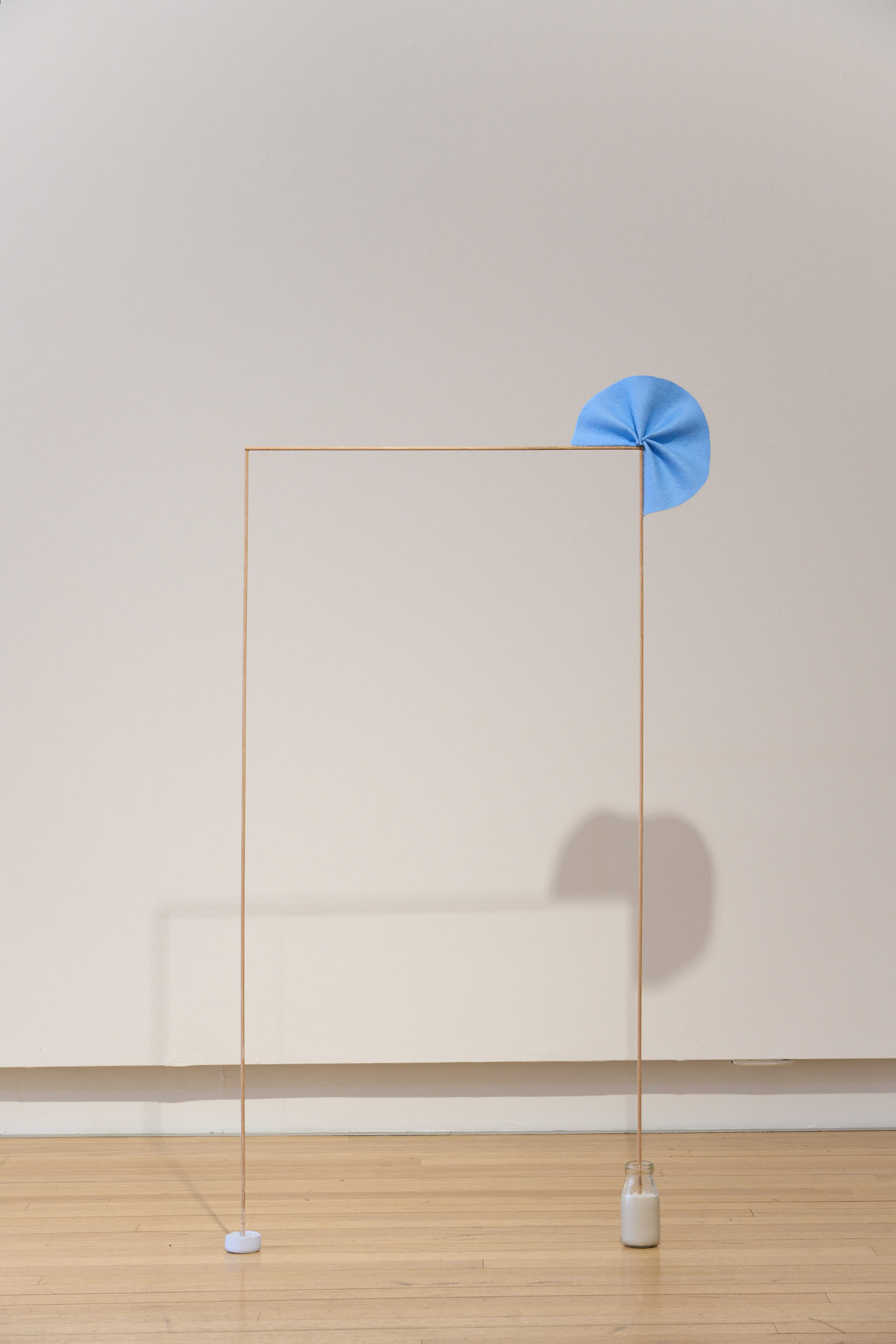 Sonja Porcaro, Like clouds (day by day, the years bloom), 2023, dowel, found milk bottle, plaster, tempera paint, wool felt, photo by Sam Roberts.