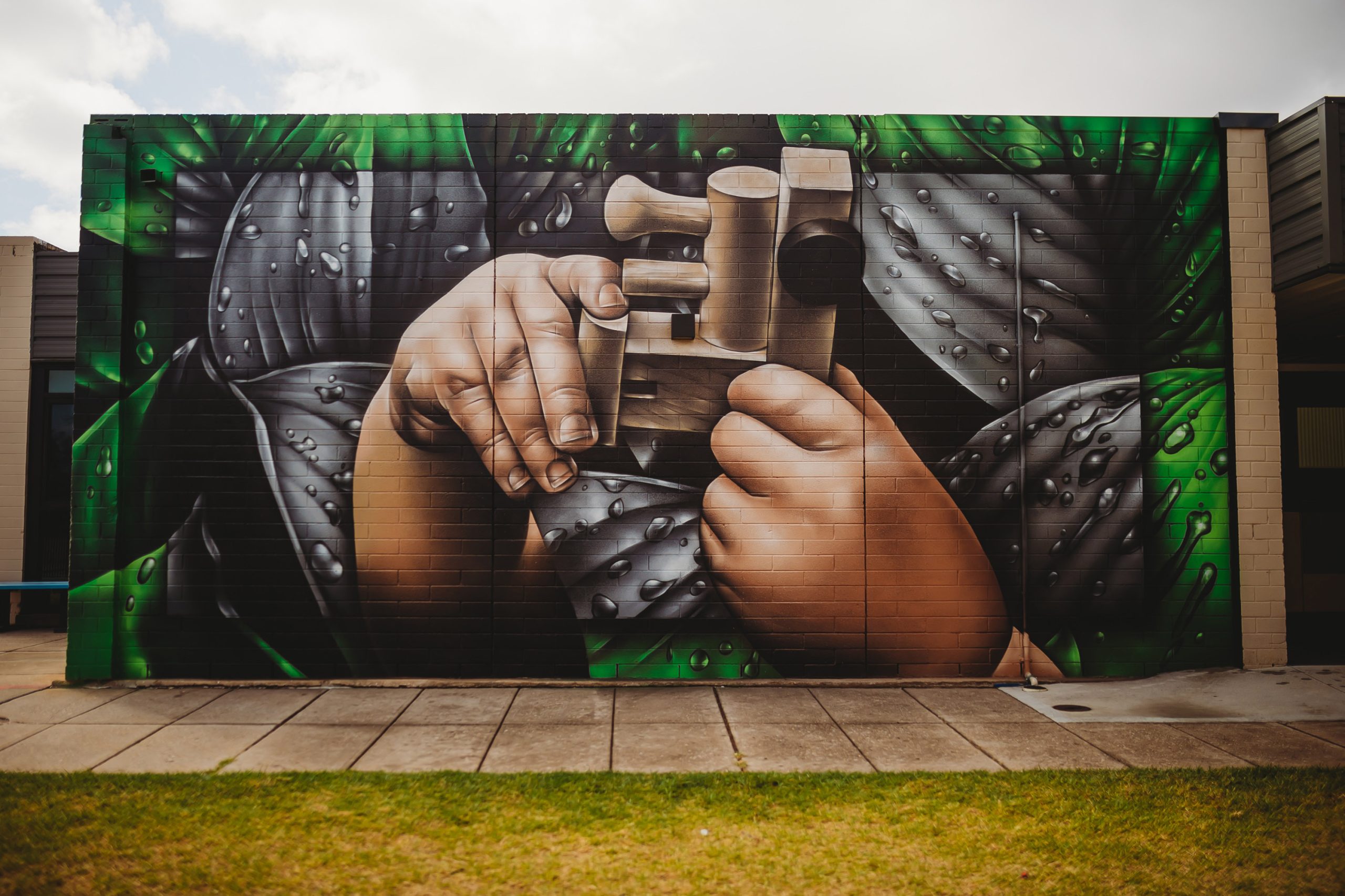 Thomas is also an established large-scale mural artist, working on numerous mural projects, public sculpture and more. Thomas has worked with most councils across SA, the SA Government, CreateSA, and has also worked with arts organisations such as, the Art Gallery of South Australia (AGSA), Adelaide Central School of Art (ACSA), Queensland Art Gallery of Modern Art (QAGOMA) and many more.