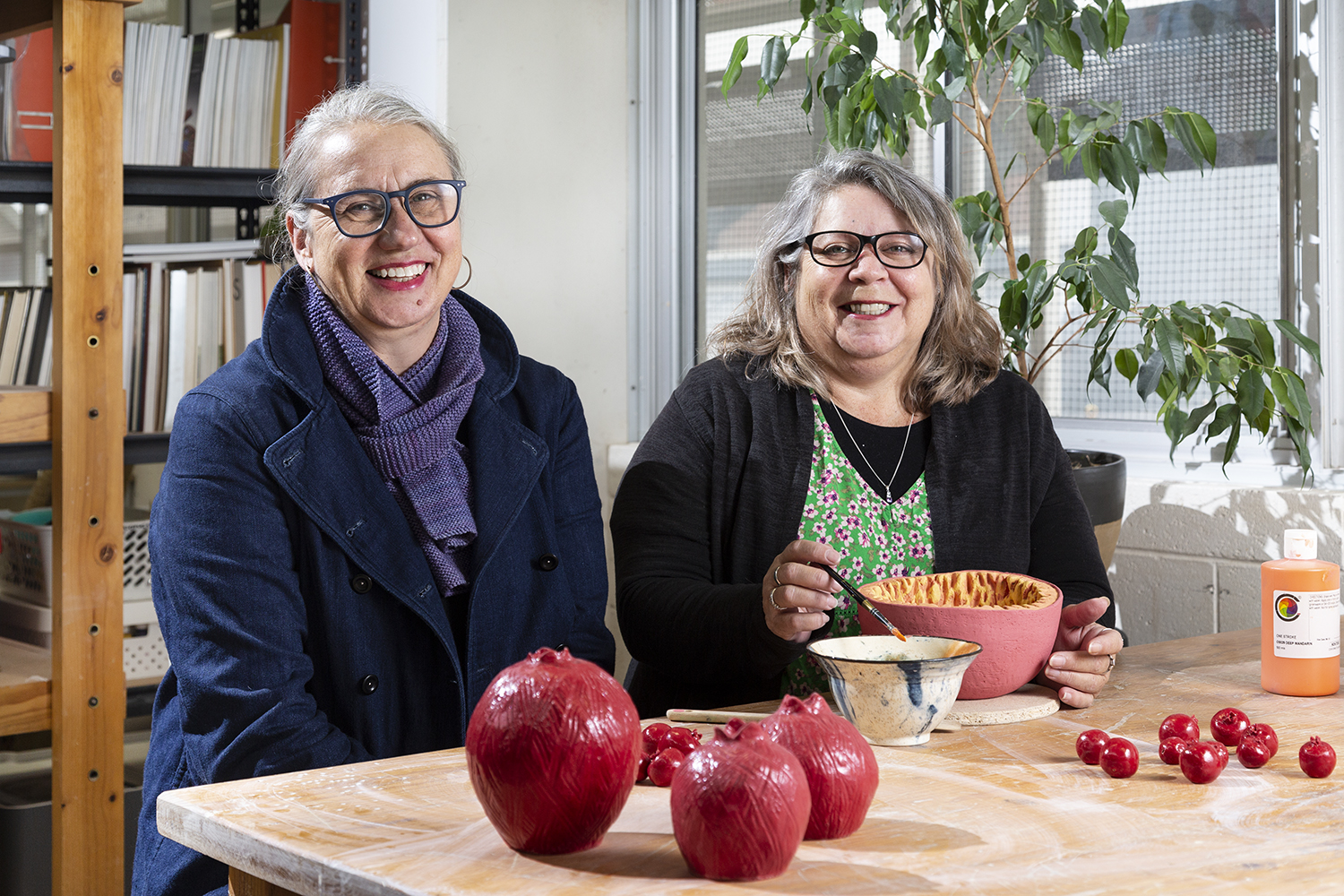 Images (L-R): Catapult Mentorship: Kat Korossy with mentor Kate Kurucz, photograph Lana Adams; Catapult Mentorship: Meg Mader with mentor Dan Withey, photograph Lana Adams; Catapult + Adelaide Fringe: Truc truong with mentor Jennifer Mathews, photograph Jack Fenby courtesy InReview; Catapult + City of Port Adelaide Enfield: Charlotte Tatton with mentor Fran O’Neill, photograph Lana Adams; Catapult + Tarnanthi: Kirsten Coelho with mentee Christina Gollan, photograph Saul Steed; Tarnanthi + Tarnanya: Shane Cook in the studio, photograph Jack Fenby courtesy InReview.